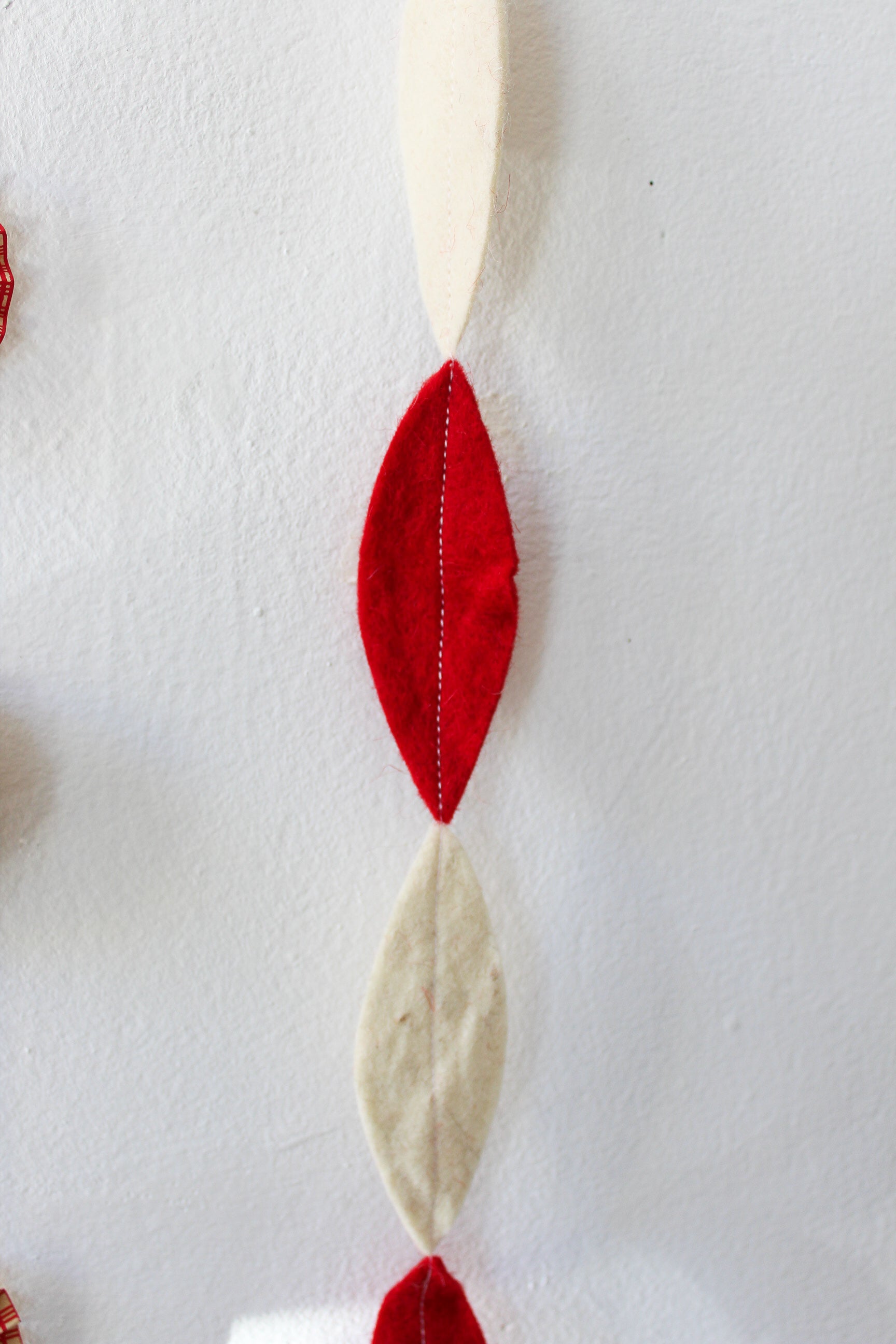This handmade wool felt garland in red and cream hues is a blend of simplicity and warmth. Each piece is carefully ...