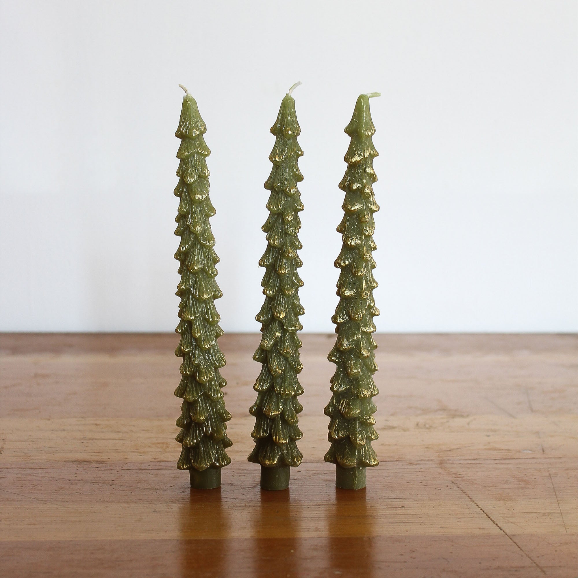 Green & Gold Tree Taper Candles